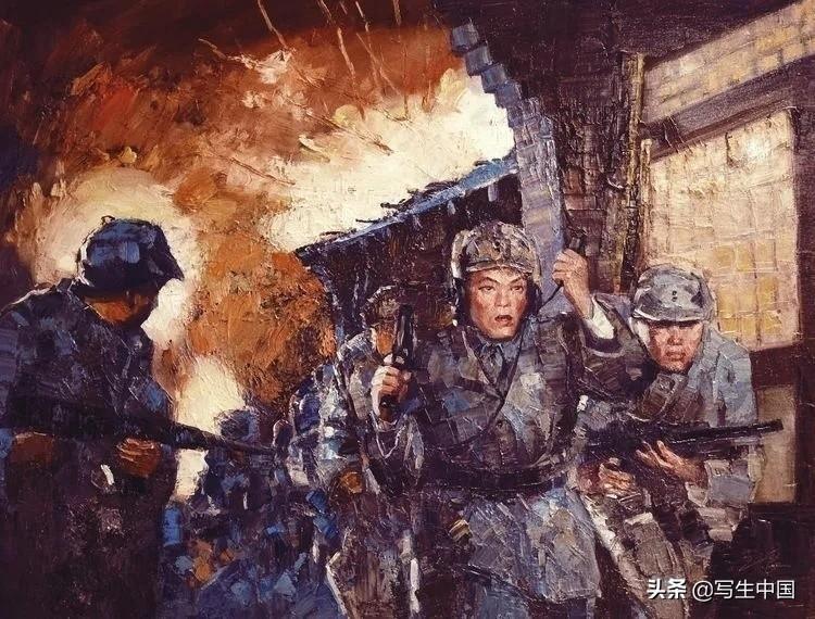 《夜袭廖耀湘指挥所孙家大院》油画 90x130cm 2021年 王根(辽沈战役黑山阻击战纪念馆收藏)