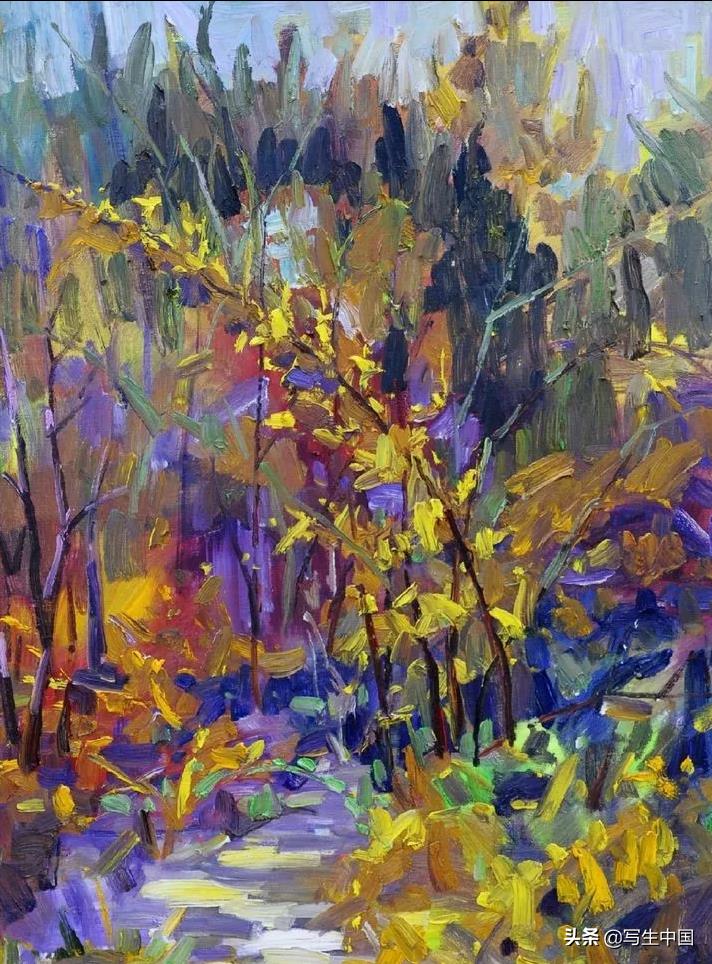 ▲《盛开迎春花的树丛》60x80cm 2018年