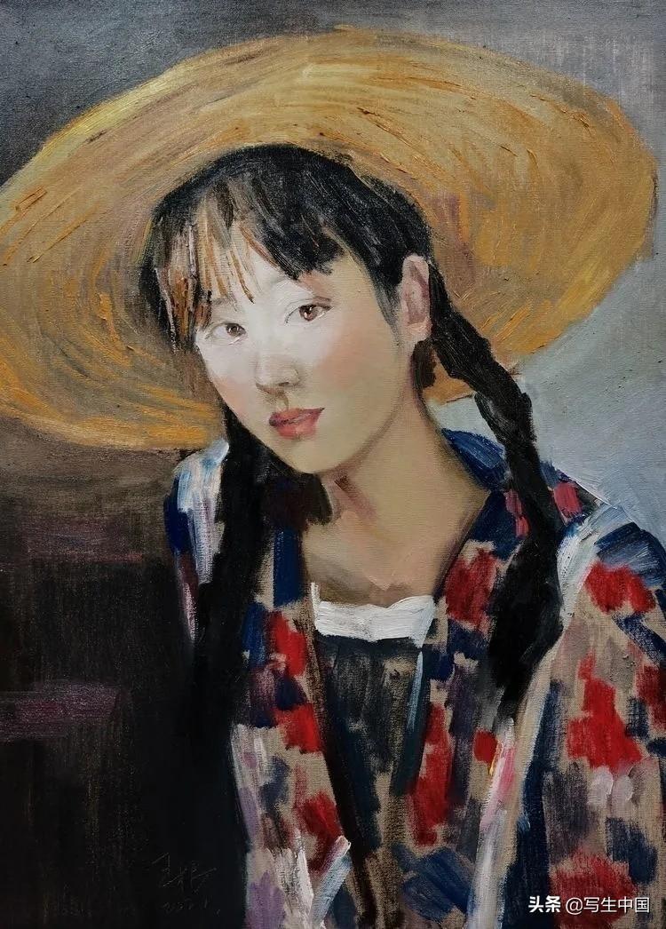 《戴草帽的女孩》油画 60x80cm 2021年 王根