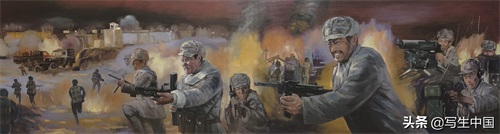 《黑山阻击战夜袭胡家窝棚》油画 100x360cm 2021年 王根(辽沈战役黑山阻击战纪念馆收藏)