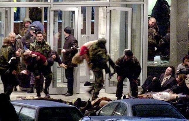 也被称为2002年的诺斯特围攻,杜布罗夫卡剧院被大约40到50名武装分子包围。超过850人被劫持为人质,要求俄罗斯军队从车臣撤军,从而结束了第二次车臣战争。