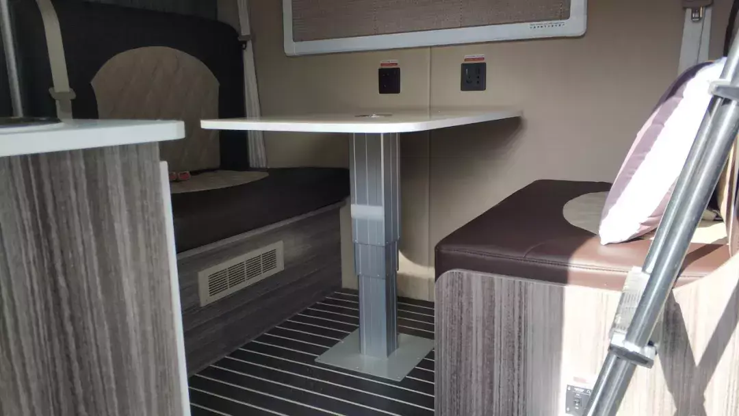 缔途房车采用了后双轮的设计,轮胎规格为195/70R15LT 8PR,承载力有保障,车辆行驶也平稳安全。外部配置,房车专用乘客门、上车踏步、遮阳棚、外置储物仓、户外照明灯、燃灶等等,可满足长期自驾游的需求。