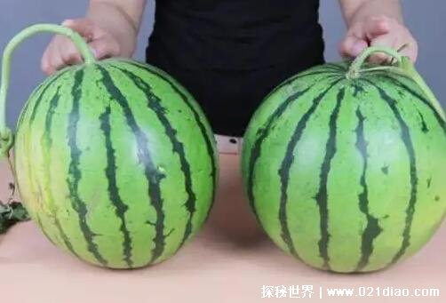 这里所说的重量并不是,虽有选择的越重越好。一般我们选择相同品种,相同大小的瓜进行对比,在用双手掂量了之后,选择较轻的瓜,很多人就问了,为什么选轻不选重呢?其实是因为西瓜接收的水分通过太阳的光照将其转化成为糖分了,所以这种瓜的甜度也会更高一些。