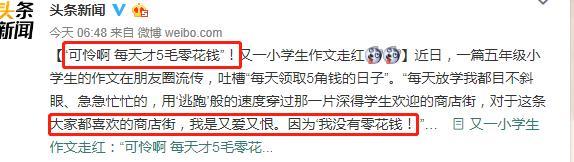 小学生作文《可怜啊》朋友圈流传,网友:都是零花钱惹的祸!