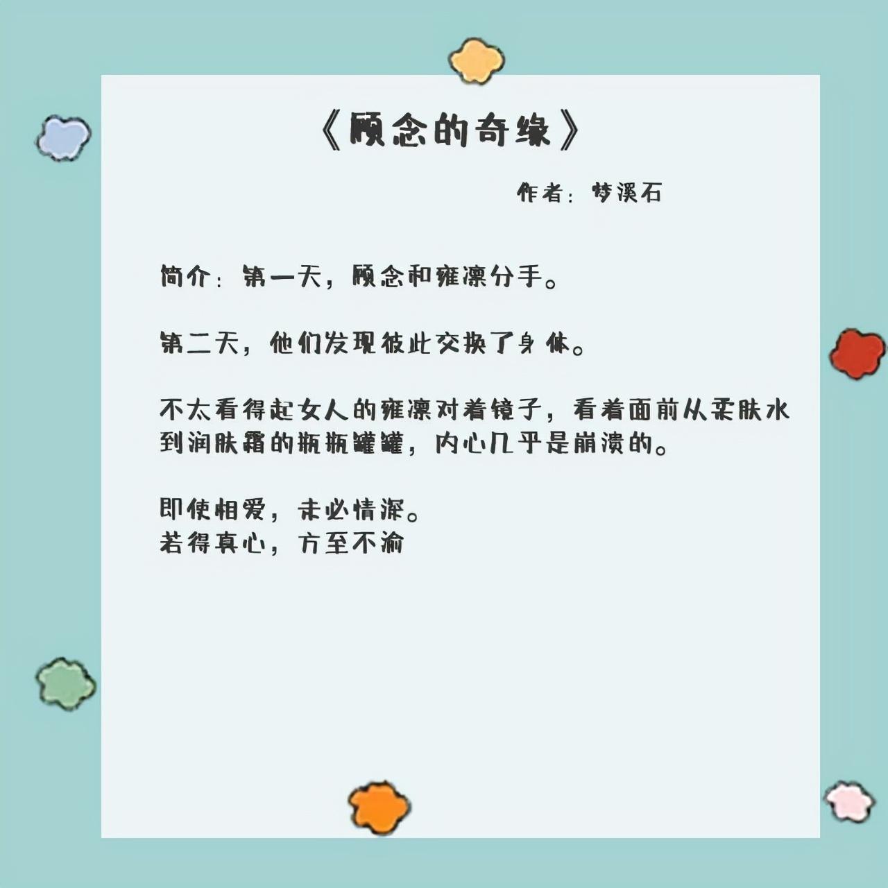 3、《顾念的奇缘》作者:梦溪石