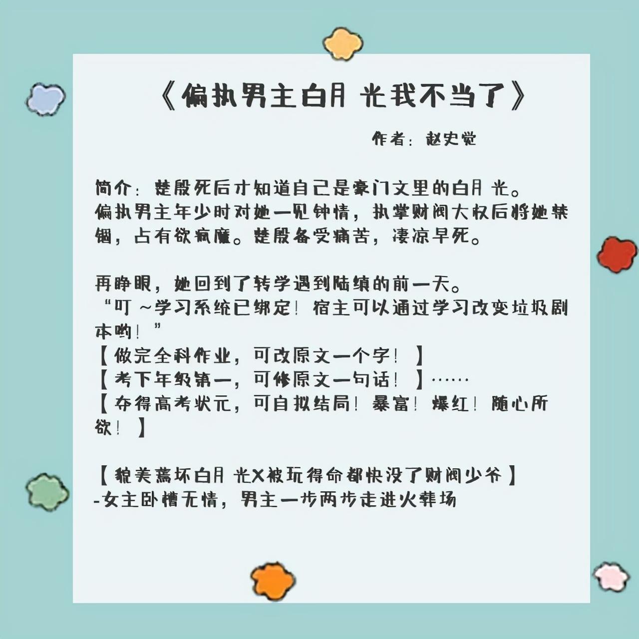 2、《偏执男主白月光我不当了》作者:赵史觉