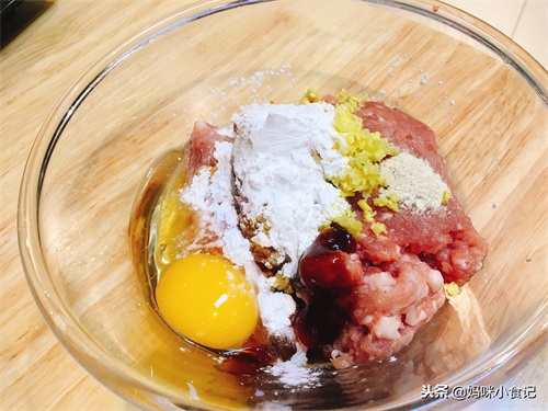瘦肉剁成泥,建议自己用手剁,机子搅出来的肉泥感觉没那么好吃,有这种感觉的吗?肉泥剁好后加入一个鸡蛋,生粉,胡椒粉,耗油,生抽,生姜末,盐,喜欢加葱的还可以加一些葱花,作料全部加完后,搅拌均匀至起劲。还可以根据自己口味添加一些胡萝卜粒什么的,我家喜欢吃纯肉的,所以就不加啦,大家自行发挥哦。