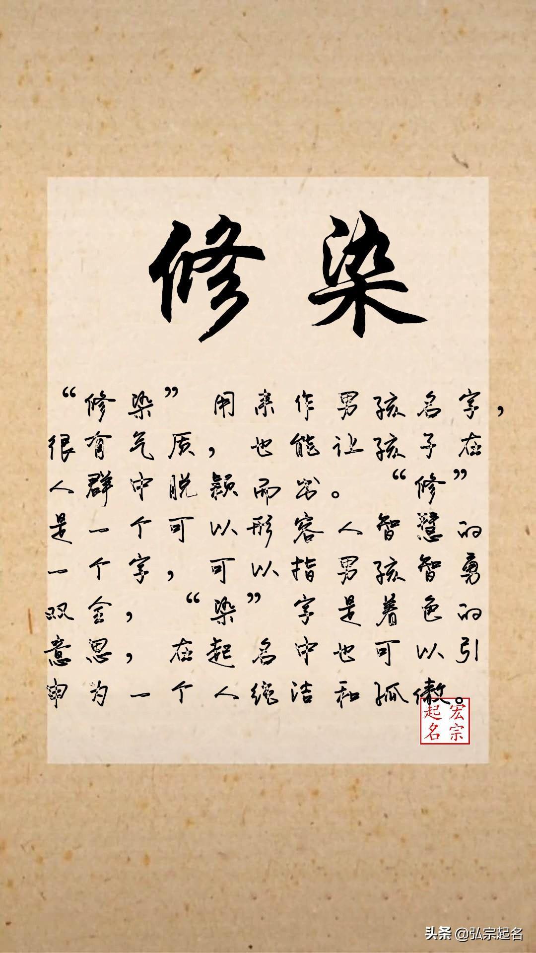 修染寓意:“修染”是一个既温柔,又带有一种清冷脱俗的感觉的词,用来作男孩名字,很有气质,也能让孩子在人群中脱颖而出。“修”是一个可以形容人智慧的一个字,可以指男孩智勇双全,“染”字是着色的意思,在起名中也可以引申为一个人纯洁和孤傲。