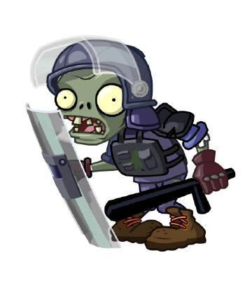 接下来就是防爆僵尸了,它会投出烟雾弹罩住植物,还会拿着盾牌抵挡伤害。