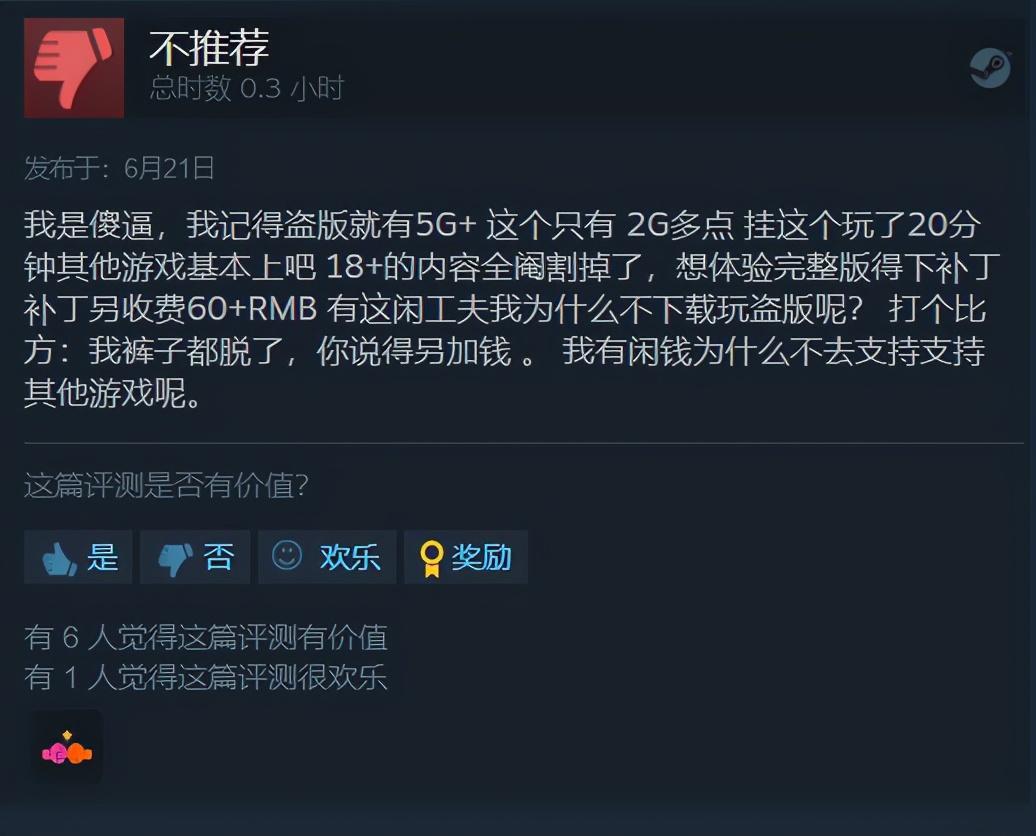 需要注意的是,游戏本体被阉割的只有2g多点(支线阉割),完整版要补60rmb的补丁。