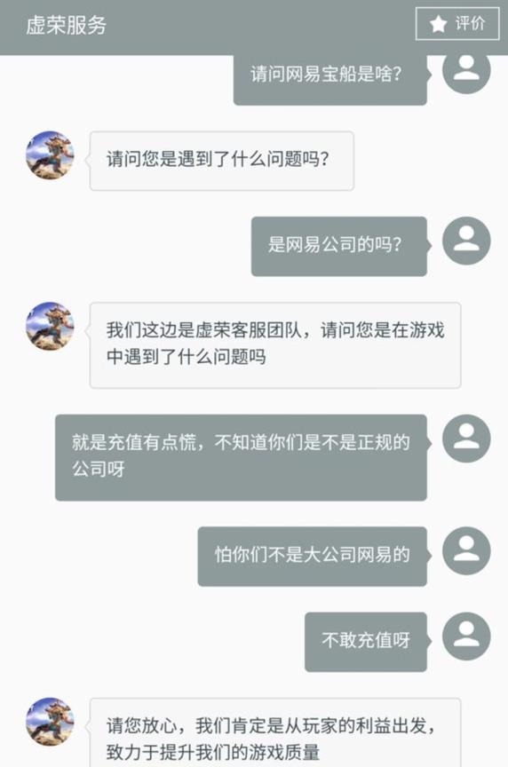 玩家表示“不知道你们网易宝船是不是正规公司,不敢充值啊”,面对充值利诱,网易宝船的客服也是坐怀不乱,咬死自己很可靠,并且是“虚荣客服团队”。