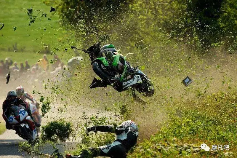 (PS,摩托车比赛中出事故很普遍,但是死人重伤的很少,原因就在于车手们出了事之后是滑出赛道,动能被摩擦力克服,身上护具保护车手不会被伤害,但是护具可以保护摩擦却很难保护高速下强烈的撞击)而在曼岛TT,车手在上坡之后往往扭一下,就出现剧烈的摇晃,原因是那个路是个弧形的坡,车直接跳出去了……配合着平均200的时速,掌握不好就会出大事故。