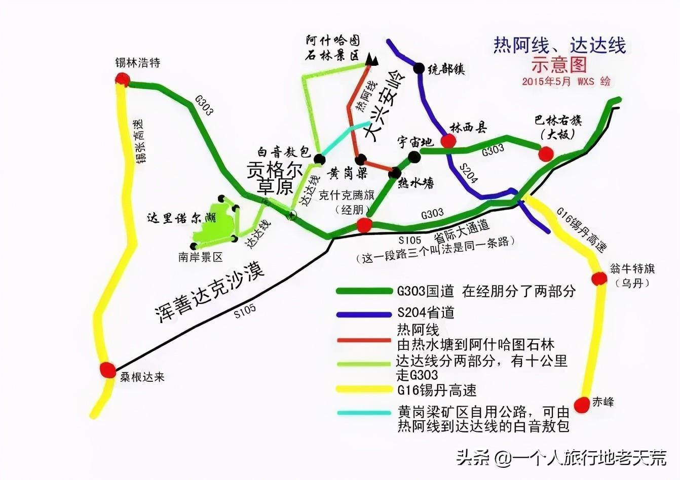 达达线:位于内蒙古赤峰市克什克腾旗,全长135公里。起始于达里湖,在蒙语里,这是“大海一样的湖”;终结在大兴安岭的南端,著名的阿斯哈图石林。