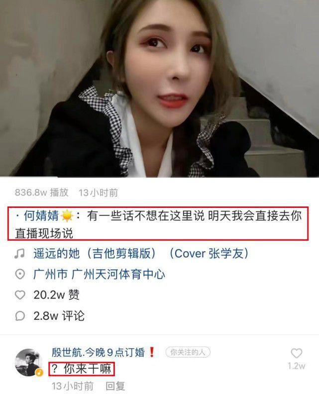 在直播时,殷世航也说希望何婧婧不要捣乱,父母都在场呢。