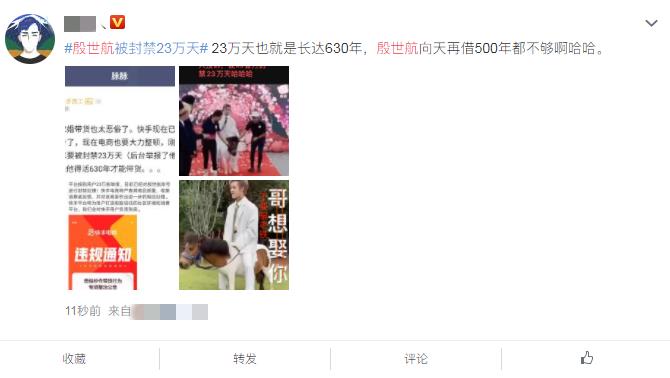某平台接到了对殷世航的23万条举报,目前已对殷世航的账号进行封禁处理,现在已经搜不到他的号了。