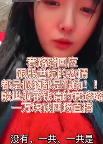 比如之前套路璐就直播说,自己是收了殷世航的钱,配合演戏而已,4场直播一万块钱。