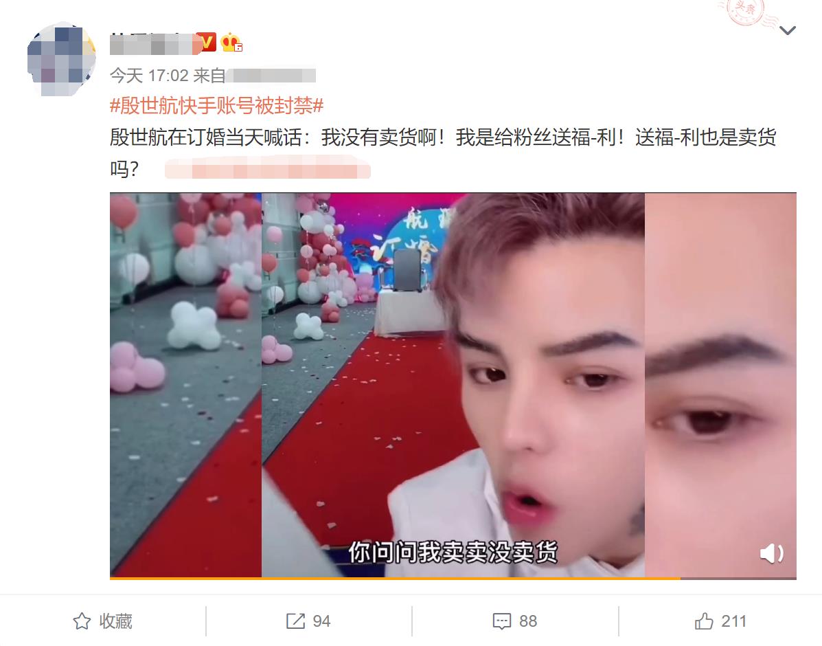 #殷世航快手账号被封禁##网红殷世航被封禁23万天#