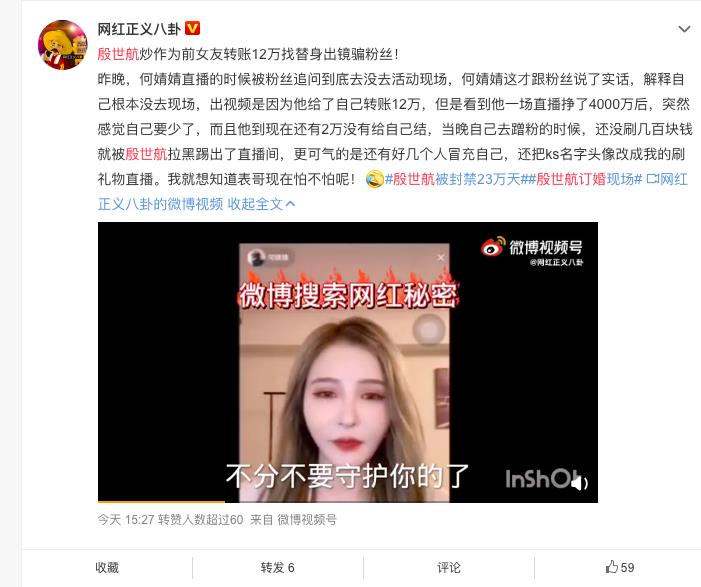 不过,人红是非多,太得瑟也容易出事!殷世航被曝出直播全是炒作。