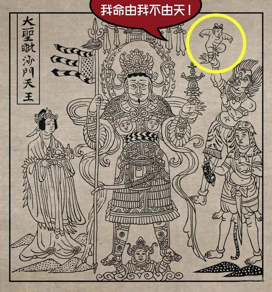 有趣的是,佛教传入中国后,与儒教、道教合流,称为“三教合流”。这其中,三个宗教体系的神仙体系也出现了一些交融。比如,托塔天王李靖的原型来自唐朝同名将领和佛教护法军神“毗沙门多闻天王”(佛教四大天王之一)的融合,其子哪吒的称呼也来自于佛教典故(毗沙门天之子也叫哪吒)。