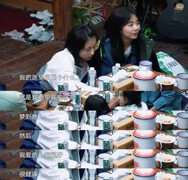 在《向往的生活》大家围坐在桌旁聊天,谭松韵被问到有什么愿望。谭松韵努力地装出没事的样子,开口说道:“我希望我能梦到她。还有,我爱的人都可以很好,很健康。”