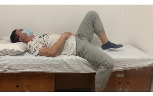 躺的时候,抱膝尽量弯曲髋关节和膝关节;