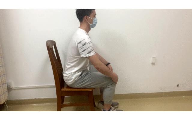 坐姿时,抱肘尽量弯曲躯干,以拉伸腰椎的肌肉。