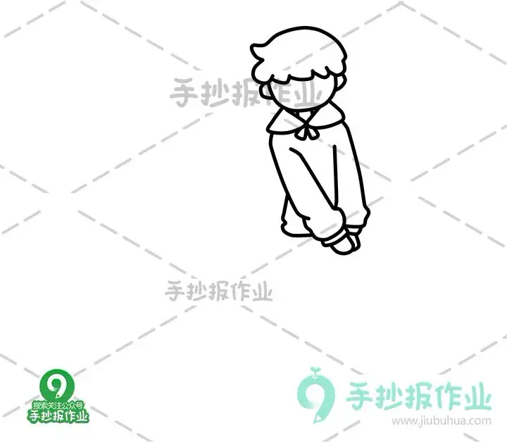 然后画出穿着校服的上半身,两只手放在一起~