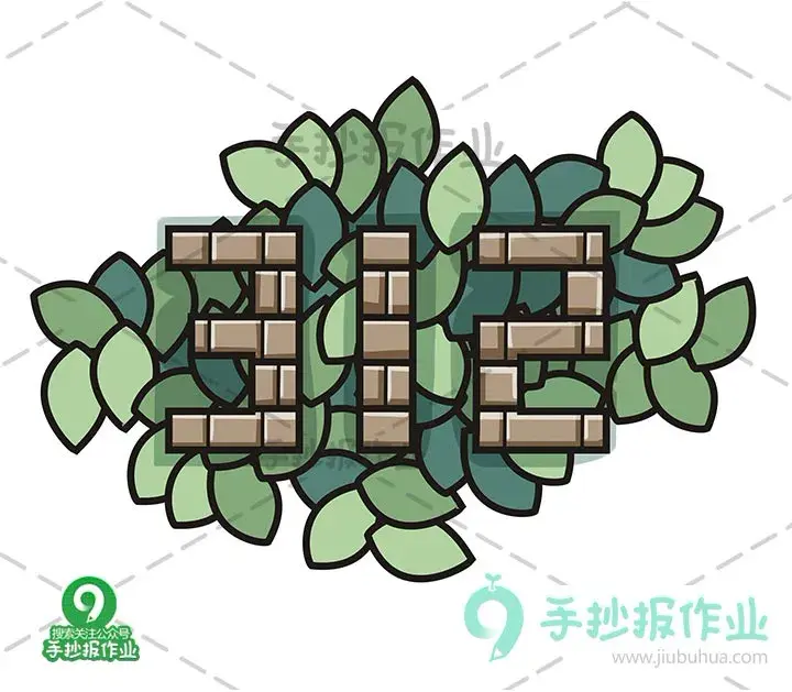 在数字间和周围画满叶子装饰~