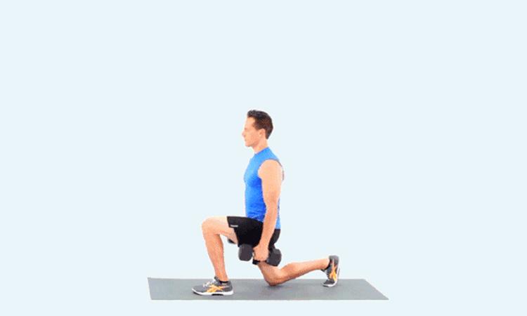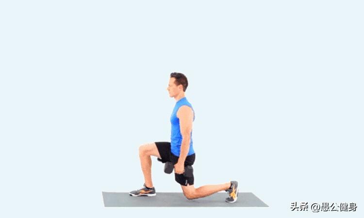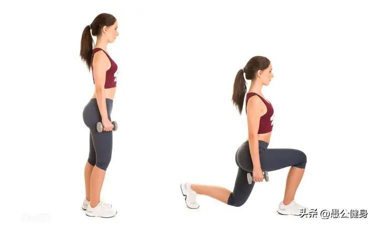 负重弓步蹲的动作(以哑铃为例)